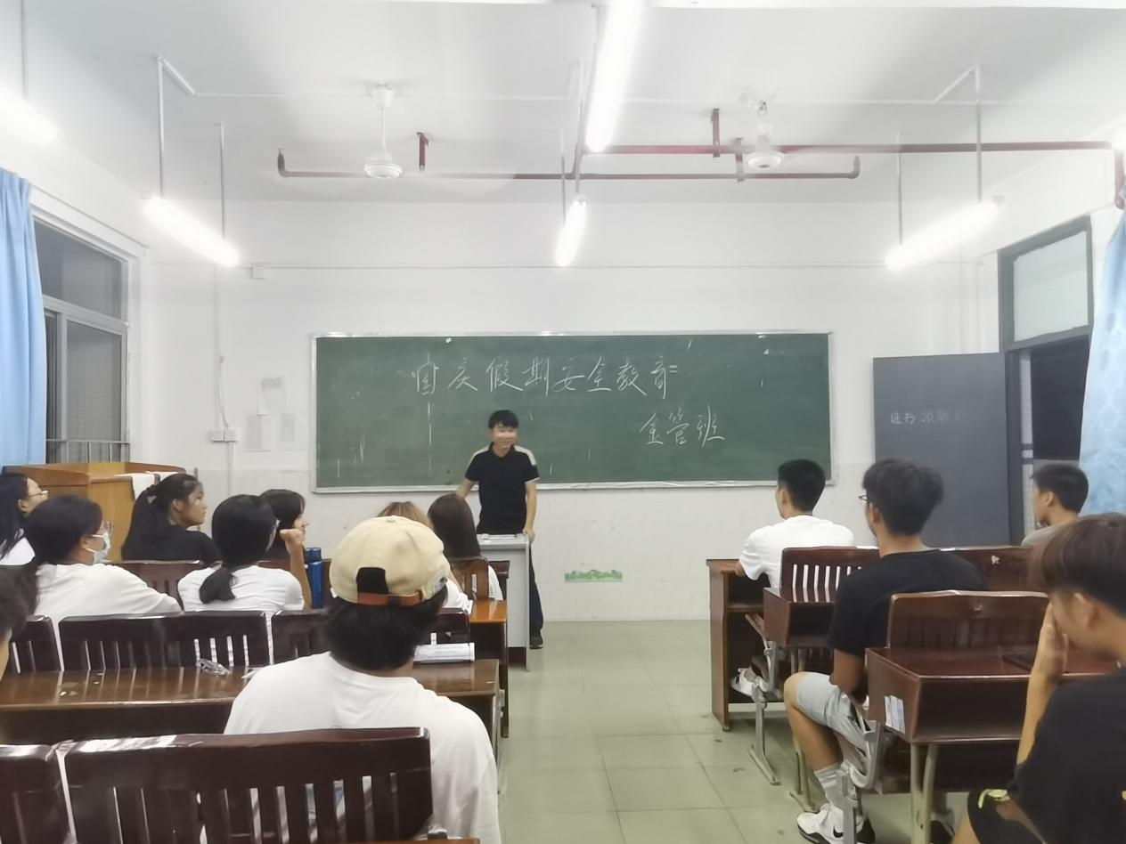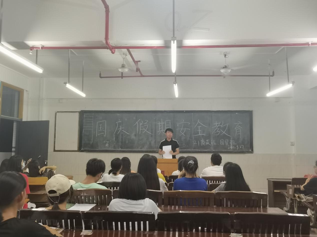 一年一度的國慶節(jié)即將來臨,為讓全體學生度過一個安全有意義的假期。2021年9月27日,財經學院21級輔導員鄭慶國老師在各班開展了國慶節(jié)放假主題班會,對同學們進行了假期安全教育。