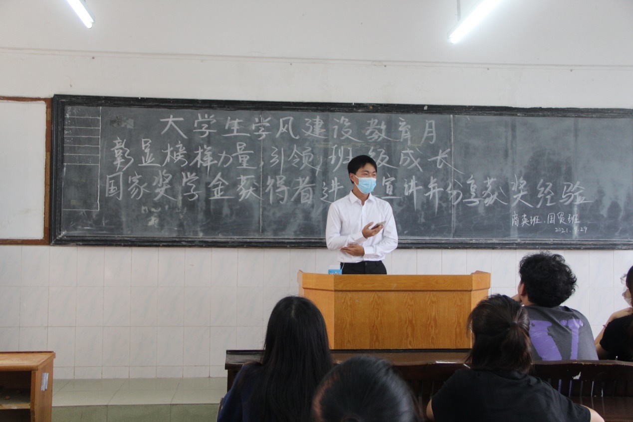 9月29日早上,財經(jīng)學院開展了一次國家獎學金獲得者進班宣講,并分享獲獎經(jīng)驗的活動。國家獎學金獲得者分別來自19級金管班鄭小麗同學和20級會計2班周俊鵬同學。