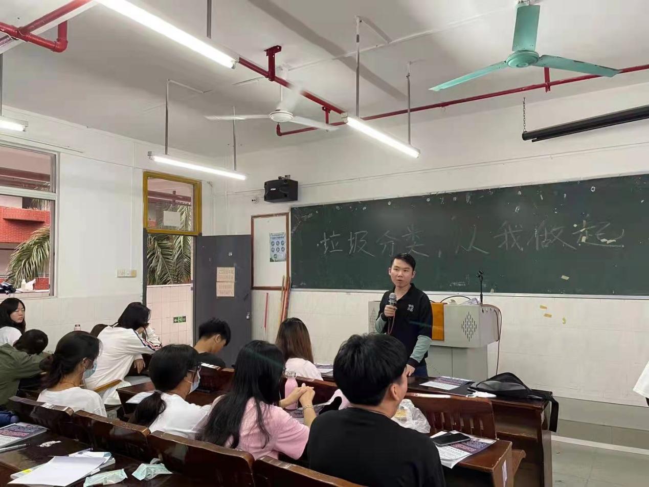 首先,鄭慶國老師向?qū)W生仔細(xì)講解了垃圾分類的重要性以及分類方法,倡導(dǎo)學(xué)生們在今后生活中自覺進(jìn)行垃圾分類,并通過行動影響身邊人,營造起垃圾分類的環(huán)保氛圍。