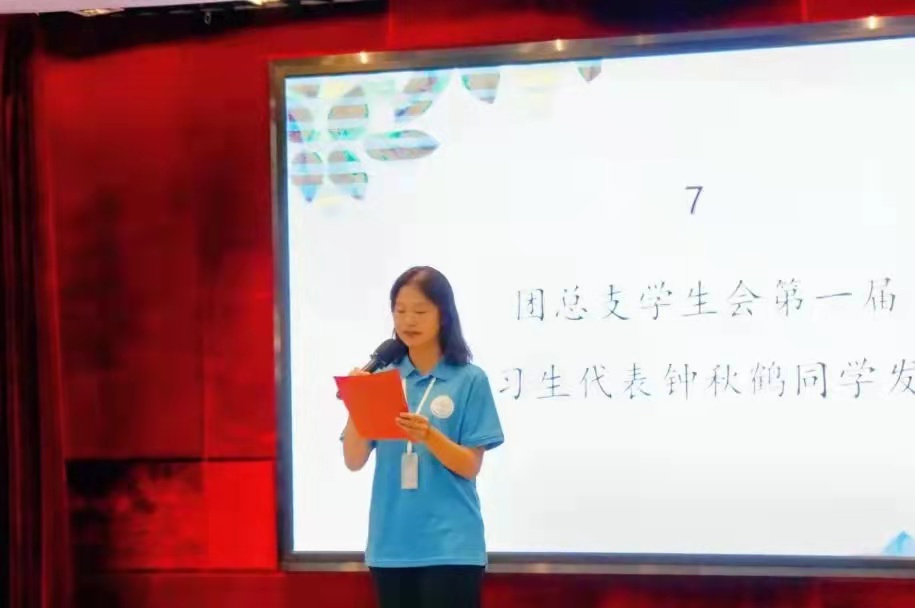 團總支學(xué)生會實習(xí)生代表鐘秋鶴同學(xué)發(fā)言