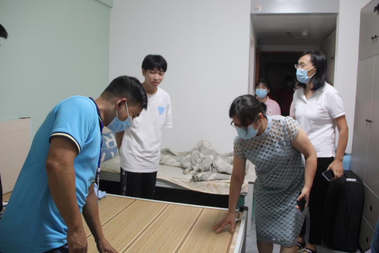 “家是哪里的?”“到學校還適應嗎?”“住的習慣嗎?”每到一處,領導會親切地詢問同學們生活是否適應、入學感受如何,輕松的對話迅速拉近了彼此的距離。同時希望同學之間在生活中要相互照顧,學習中要互相幫助,共同進步,“挺適應的,”“謝謝老師” 新生們狀態(tài)精神飽滿,都很適應宿舍的生活,對領導和老師們的到來十分感動,紛紛禮貌道謝。“有什么問題和需求,及時向宿管阿姨和輔導員老師反饋”,領導告訴同學們,學校所有老師都會第一時間幫助解決。