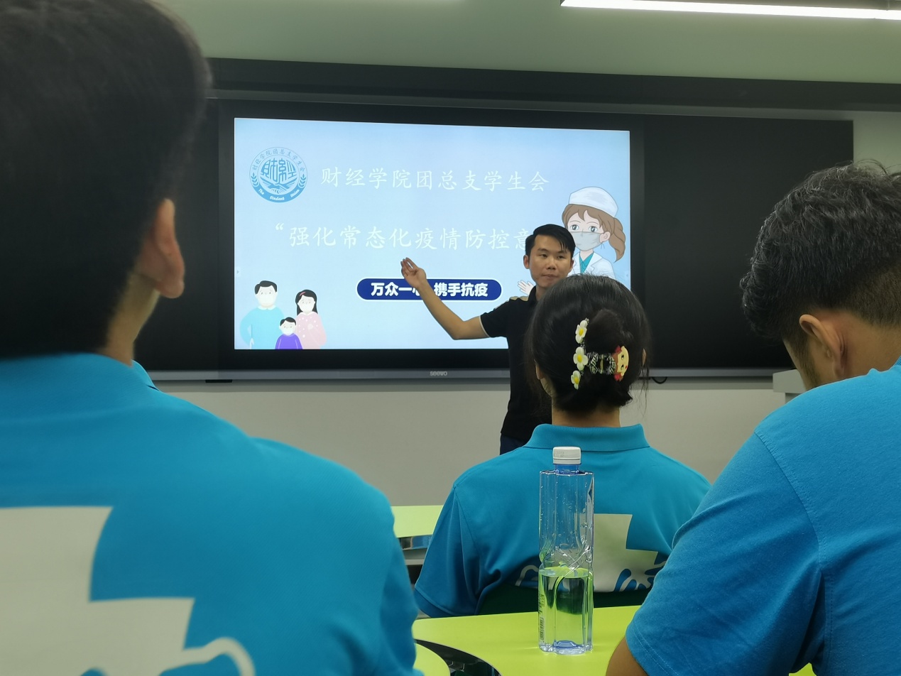 2020年初,新冠疫情開始爆發(fā),經(jīng)過全國人民一年多的努力,我們現(xiàn)已實現(xiàn)復(fù)工復(fù)產(chǎn),但這并不表示疫情的結(jié)束?,F(xiàn)階段我國已進(jìn)入了疫情防控常態(tài)化的階段,而疫情的爆發(fā)往往伴隨著假期的高峰期,仍然會有反彈形勢。為了提高同學(xué)們的疫情防控意識,財經(jīng)學(xué)院團(tuán)總支學(xué)生會于11月4日晚上8點在西三教學(xué)樓智慧團(tuán)建208召開“強(qiáng)化常態(tài)化疫情防控意識”會議。參加會議有團(tuán)總支學(xué)生會全體干部和各部門一部分實習(xí)生。會議由團(tuán)總支書記鄭慶國老師主講。