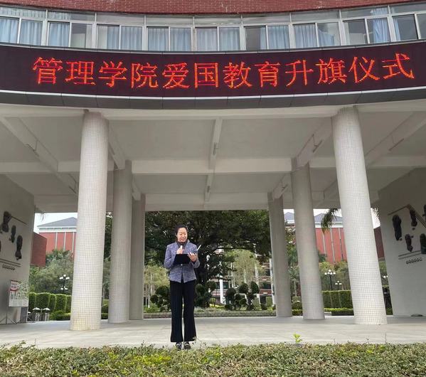 為貫徹愛國精神讓愛國主義教育更加深入人心,2021年12月13日早上7點(diǎn)30分,廣州華立科技職業(yè)學(xué)院第十六周升旗儀式在西區(qū)綜合樓廣場(chǎng)舉行,主題為“愛國教育”。本次升旗儀式由管理學(xué)院承辦,并邀請(qǐng)了管理學(xué)院程玉賢院長在國旗下發(fā)言,管理學(xué)院全體師生參加了此次升旗儀式。