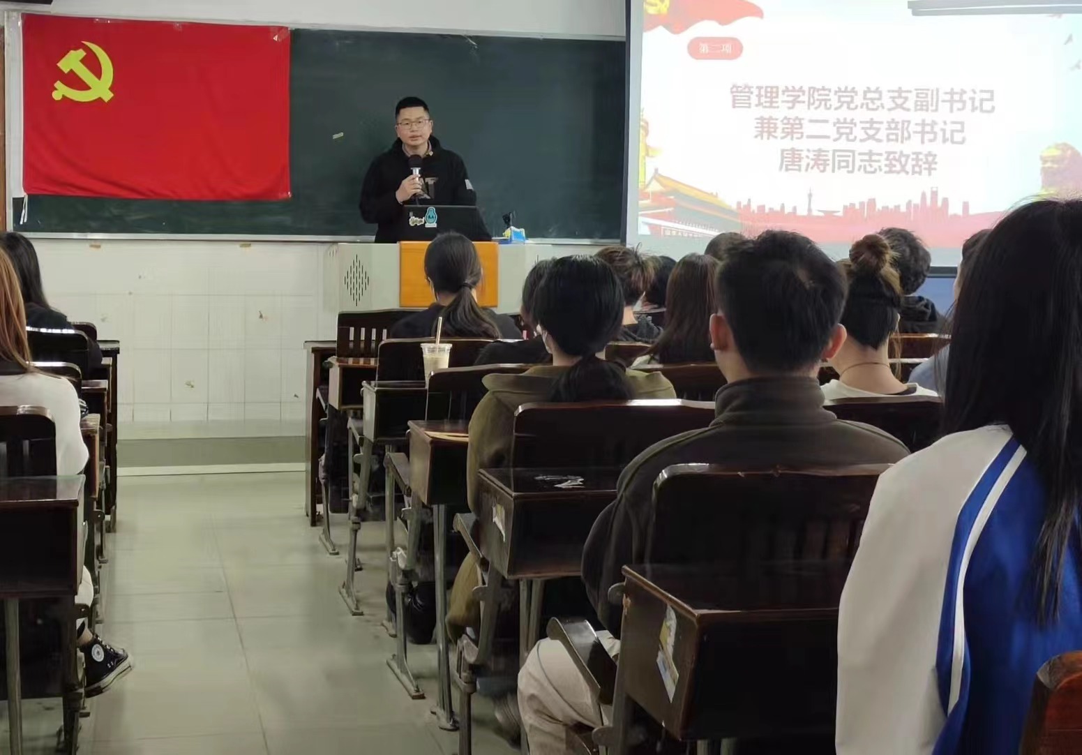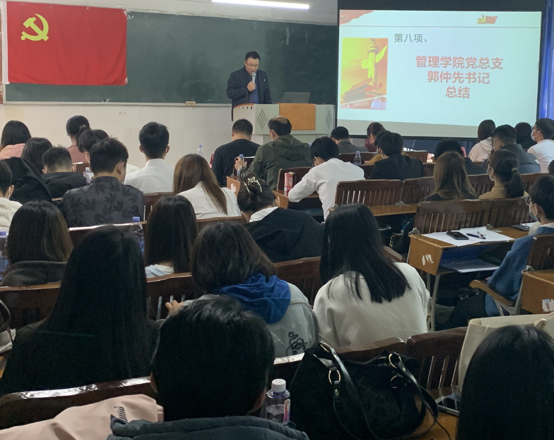 2021年12月8日 10:00-12:00于西三312教室舉行管理學(xué)院第二黨支部2021年下半年預(yù)備黨員轉(zhuǎn)正大會(huì),參會(huì)人員有:管理學(xué)院黨總支書(shū)記郭仲先同志、管理學(xué)院黨總支副書(shū)記兼第二黨支部書(shū)記唐濤同志、管理學(xué)院第一黨支部書(shū)記康信恩同志、管理學(xué)院第二黨支部組織(宣傳)委員陳媛同志、管理學(xué)院第二黨支部紀(jì)檢委員戴雙雅同志、以及到場(chǎng)教師黨員和學(xué)生黨員。本次會(huì)議由陳宣廷同學(xué)主持。