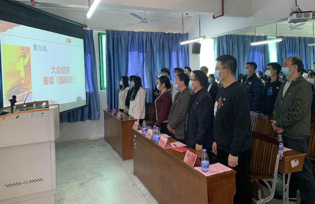 全體黨員同志起立,奏《國(guó)際歌》
