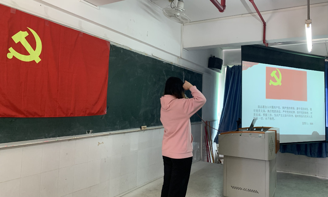 緊接著,由管理學(xué)院第二黨支部組織(宣傳)委員陳媛同志帶領(lǐng)全體黨員重溫入黨誓詞。