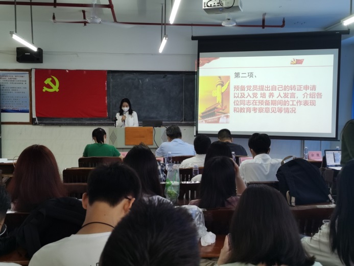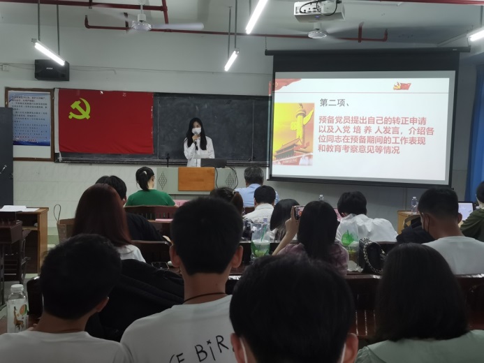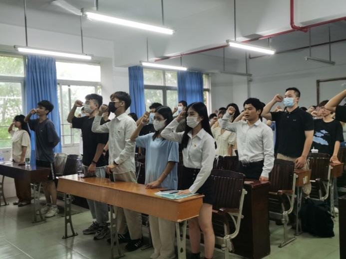 第五、緊接著由管理學(xué)院第二黨支部組織(宣傳)委員陳媛同志帶領(lǐng)全體黨員重溫入黨誓詞。