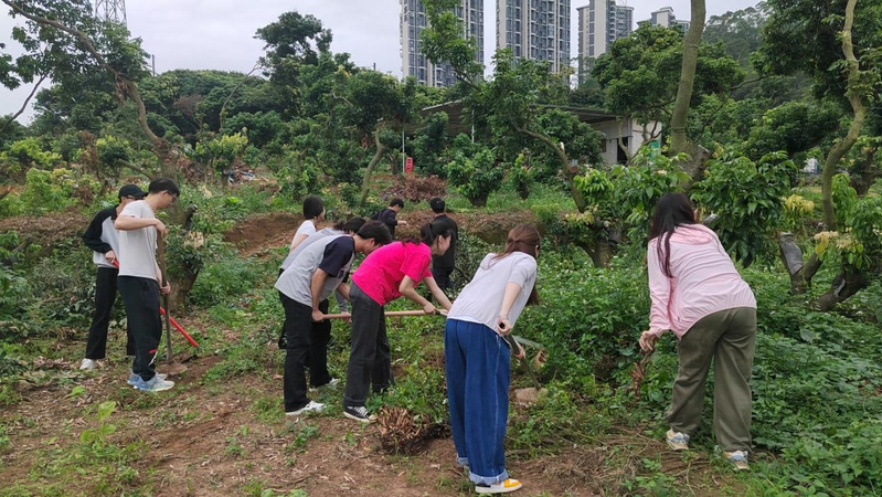 圖2 師生代表在陸村村荔枝林農(nóng)場(chǎng)開(kāi)拓新的涼粉草種植地