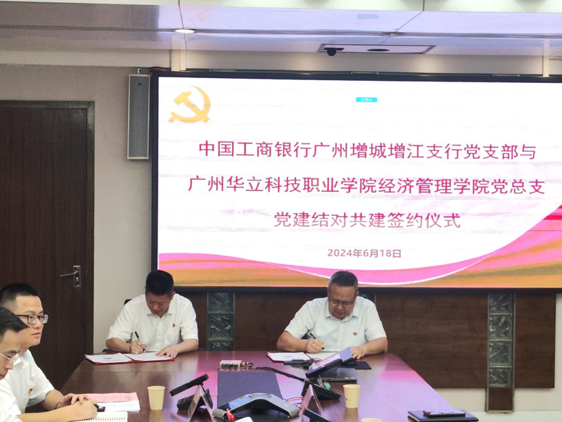 6月18日上午,經(jīng)濟(jì)管理學(xué)院黨總支與中國(guó)工商銀行廣州增城增江支行黨支部舉行黨建結(jié)對(duì)共建簽約儀式。學(xué)校黨委書記陳良聲、中國(guó)工商銀行廣州增城支行黨委書記行長(zhǎng)劉明強(qiáng)以及雙方相關(guān)領(lǐng)導(dǎo)、黨員代表參加了簽約儀式。