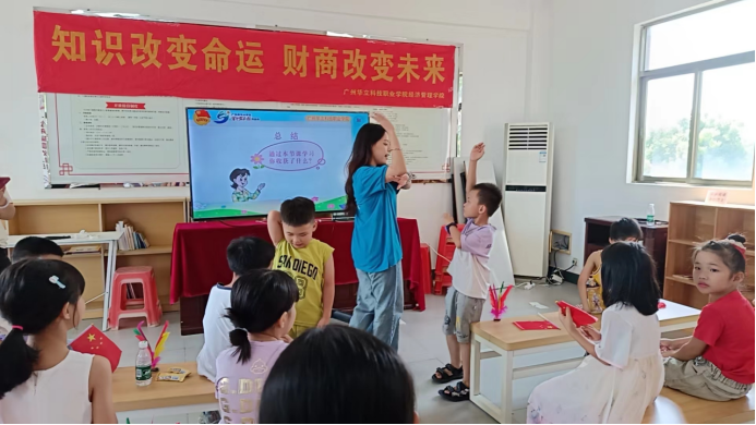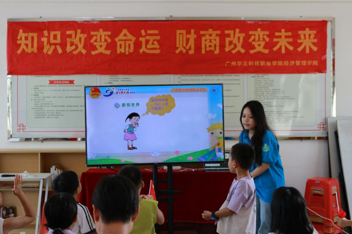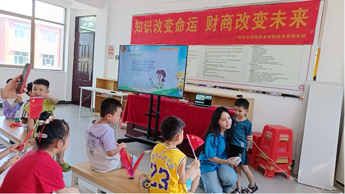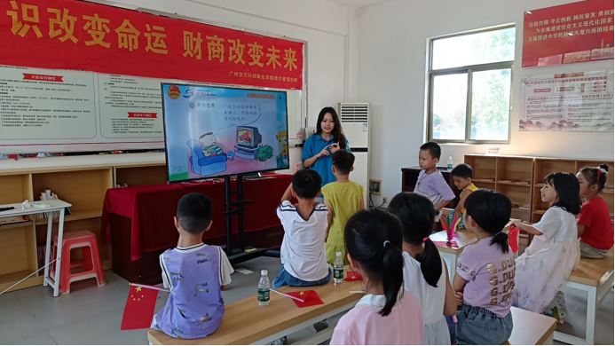 2024年7月14日,廣州華立科技職業(yè)學(xué)院經(jīng)濟(jì)管理學(xué)院財(cái)智天下突擊隊(duì),攜帶“財(cái)商秘鑰”來到學(xué)?!鞍偾f工程”大學(xué)生社會實(shí)踐基地暨暑假三下鄉(xiāng)實(shí)踐點(diǎn)---增城區(qū)增江街大埔圍村。他們團(tuán)隊(duì)以“知識改變命運(yùn),財(cái)商改變未來”為主題,引領(lǐng)著大埔圍村一群祖國未來的花朵,走進(jìn)了財(cái)商知識的海洋,幫助他們敲開了未來的“財(cái)富”之門!