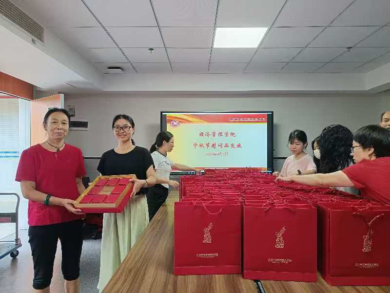 經濟管理學院副院長梁慧貞為教師送上中秋節(jié)禮物
