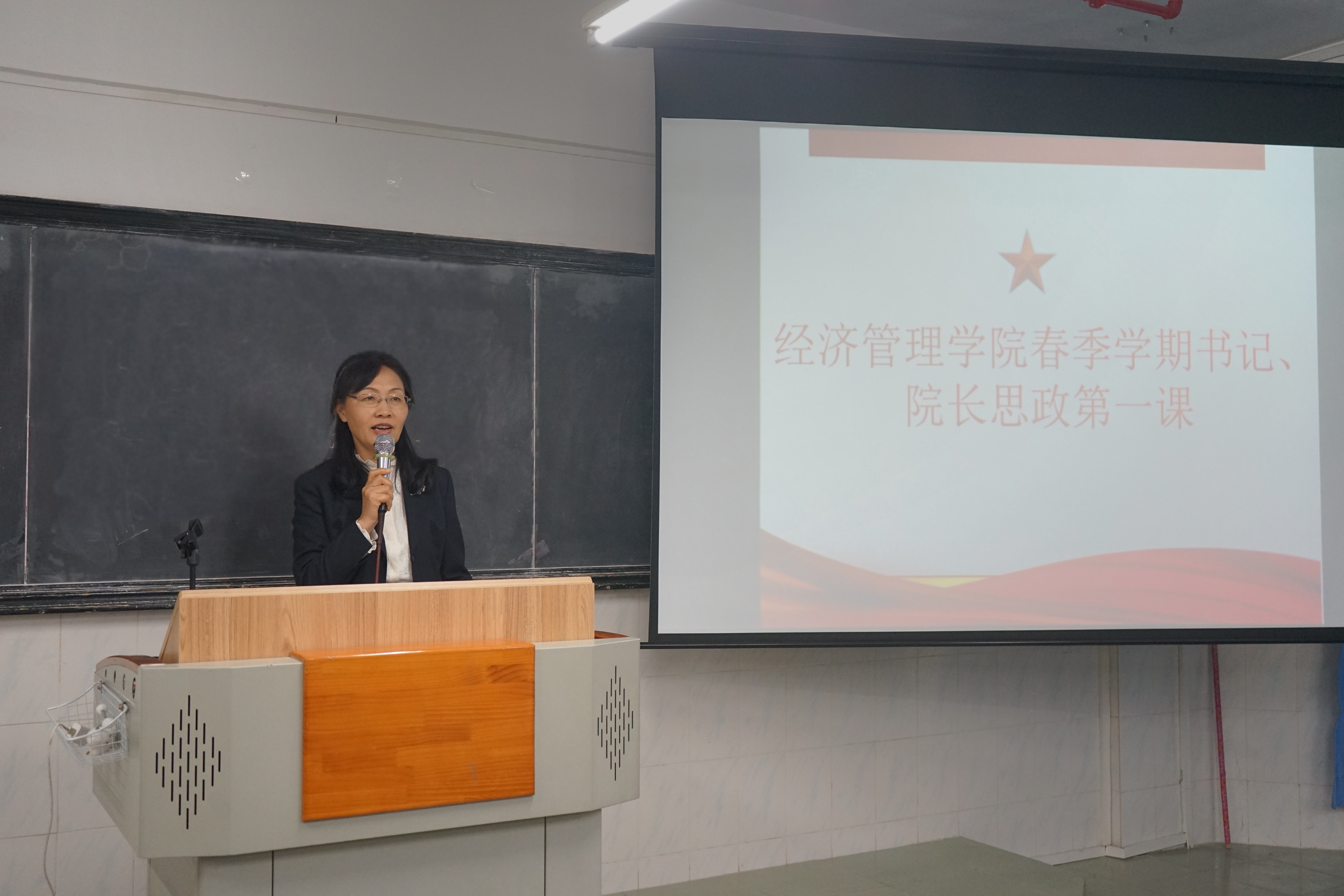 授課伊始,劉惠玲同志以 “勇?lián)鷷r代使命,譜寫青春華章” 為題,結合當下社會熱點與歷史案例,深入淺出地闡述了新時代背景下青年所肩負的使命和責任。通過講述革命先輩投身基層建設、肩負民族復興大任的事跡,激勵學生們勇?lián)鷷r代使命,將個人理想與國家發(fā)展緊密相連。