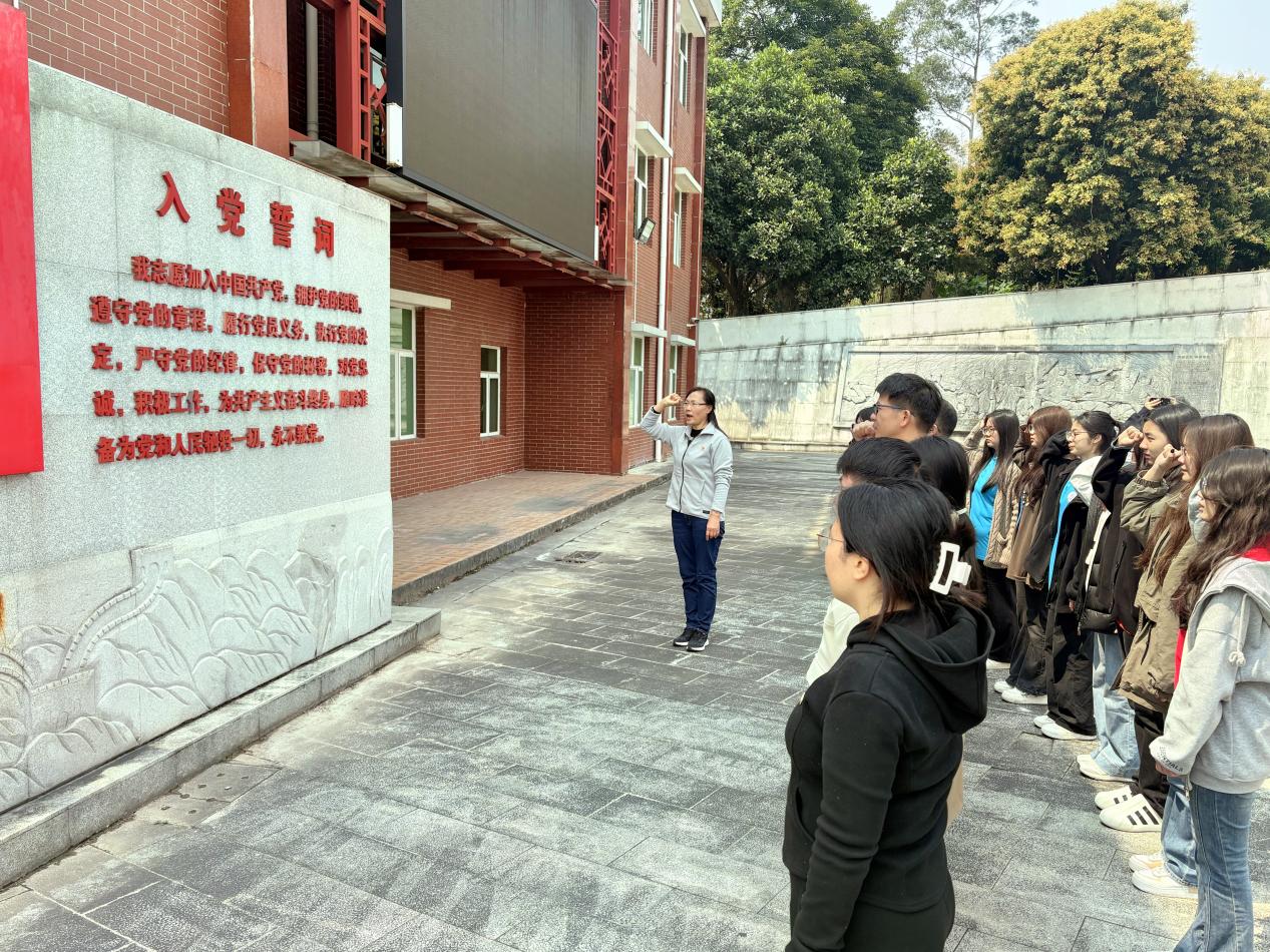 在烈士紀念碑前,黨員教師面向黨旗莊嚴宣誓,重溫入黨誓詞?!拔抑驹讣尤胫袊伯a(chǎn)黨……”鏗鏘誓言響徹陵園,傳遞著新時代黨員繼承先烈遺志、永葆政治本色的決心。