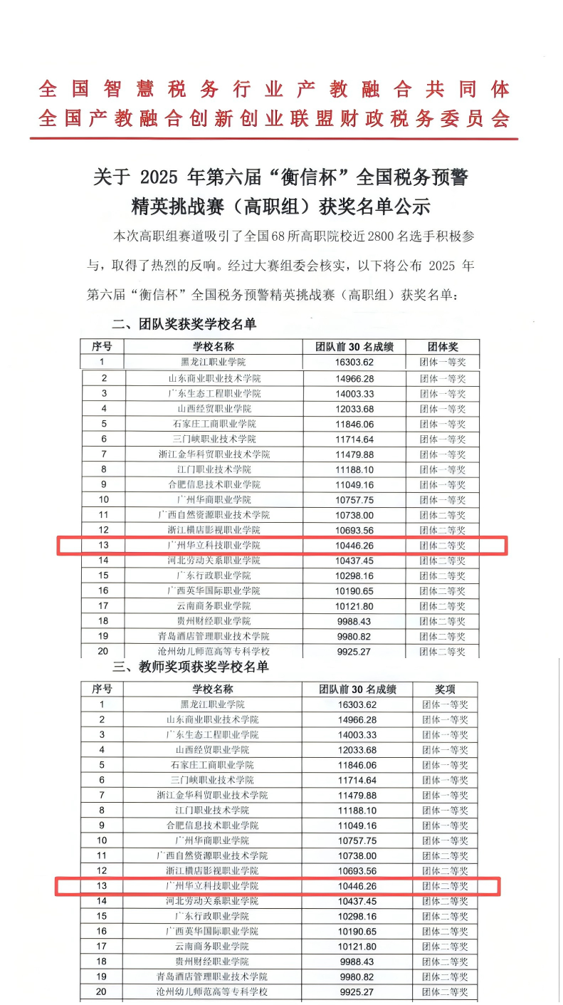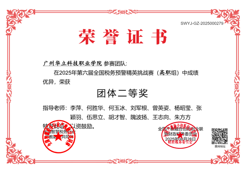 經(jīng)過2025年8月1日至22日長達22天賽程,第六屆全國稅務預警精英挑戰(zhàn)賽(高職組)成功舉辦,經(jīng)管學子在本次大賽中喜獲團體二等獎!。本次大賽吸引了來自全國68所高職院校的近2800名選手同場競技,共同角逐財稅領(lǐng)域的專業(yè)榮譽。
