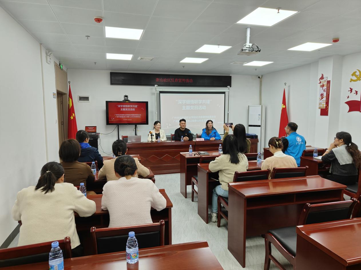 為深入學(xué)習(xí)貫徹黨的二十屆四中全會(huì)精神,推動(dòng)黨建與基層治理深度融合,構(gòu)建“政-校-社”協(xié)同發(fā)展新格局,2025年11月28日上午,廣州華立科技職業(yè)學(xué)院經(jīng)濟(jì)管理學(xué)院黨總支聯(lián)合廣州市增城區(qū)增江街象山社區(qū)支部委員會(huì)和廣州市增江街社工服務(wù)站支部委員會(huì)在象山社區(qū)黨群服務(wù)中心,共同開展“深學(xué)細(xì)悟、聯(lián)學(xué)共建”主題黨日活動(dòng)。廣州華立科技職業(yè)學(xué)院經(jīng)濟(jì)管理學(xué)院黨總支委員、副院長朱向平,增江街象山社區(qū)黨支部書記麥志穎、增江街社工服務(wù)站黨支部書記宗穎施及三方黨員代表共同參與活動(dòng)。