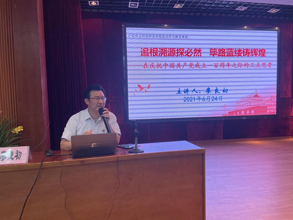 在舉國上下同慶中國共產(chǎn)黨成立100周年之際,為扎實(shí)推進(jìn)黨史學(xué)習(xí)教育走深走實(shí),6月24日下午,廣州華立科技職業(yè)學(xué)院黨委在東區(qū)圖書館1號報告廳舉辦黨史學(xué)習(xí)教育專題報告會,邀請黨史專家、我校馬克思主義學(xué)院常務(wù)副院長廖良初教授作專題輔導(dǎo)報告。學(xué)校黨委委員、校領(lǐng)導(dǎo)、中層干部、黨務(wù)干部、思政課教師和七一表彰對象參加。會議由學(xué)校黨委書記林偉健教授主持。云浮校區(qū)以視頻連線方式一同參與。
