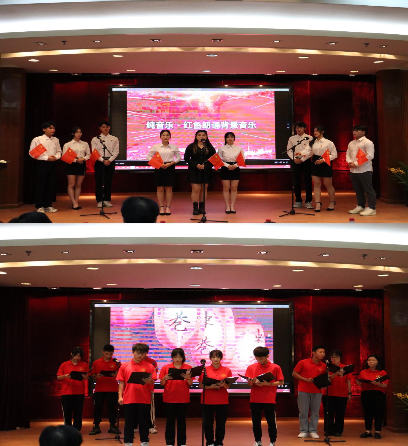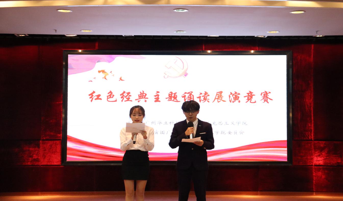 2022年11月1日晚19點,由馬克思主義學院主辦,校團委承辦的廣州華立科技職業(yè)學院大學生“紅色經(jīng)典主題 誦讀展演競賽”活動于東區(qū)圖書館一號報告廳正式落下帷幕。本次比賽的目的是學習宣傳貫徹黨的二十大精神,在誦讀紅色經(jīng)典中學習黨的百年光輝歷史,鑄牢中華民族共同體意識。出席此次大賽的領導和嘉賓有學校黨委書記陳良聲、馬克思主義學院院長廖良初、教育學院教授高玲以及各二級學院黨總支書記、團總支書記、輔導員、馬克思主義學院全體老師等。擔任此次大賽的評委有馬克思主義學院王立敏教授、辦公室主任朱君副教授、黨委辦公室孟允煌副主任、校團委楊濤書記、馬克思主義學院白淑梅副教授、馬克思主義學院張燕金副教授以及馬克思主義學院李敏教師。