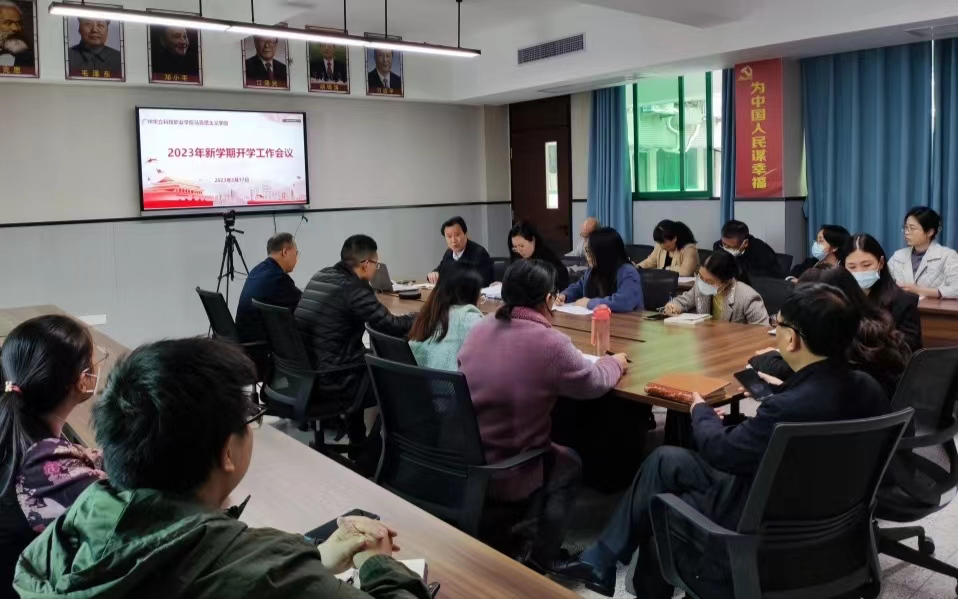 2月17日,馬克思主義學(xué)院在行政樓518會議室召開新學(xué)期開學(xué)工作會議,學(xué)校黨委書記陳良聲、黨委辦公室副主任任志勇、學(xué)校品牌提升辦主任劉宇赤、圖書館館長劉杰、校外實訓(xùn)辦主任鐘文浩、廣州校區(qū)全體思政課教師參加。云浮校區(qū)思政課教師以騰訊會議的形式線上參會。