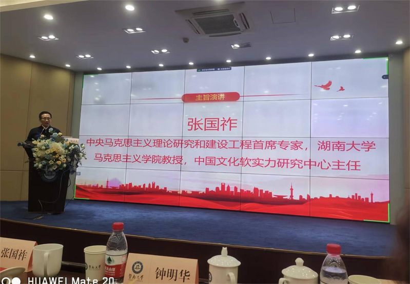 中央馬克思主義理論研究和建設(shè)工程首席專家、中國文化軟實(shí)力研究中心主任張國祚教授做主旨發(fā)言。他指出,暨南大學(xué)“忠信篤敬”四字校訓(xùn)所傳遞的價值理念,與中華優(yōu)秀傳統(tǒng)文化高度契合,與習(xí)近平文化思想提出的新的文化使命一脈相承。他表示,在習(xí)近平總書記“3·18”重要講話五周年來臨之際召開本次研討會,具有非凡的意義。隨后,張教授圍繞“習(xí)近平文化思想的原創(chuàng)性理論貢獻(xiàn)”進(jìn)行了深刻地闡述,對如何全面、科學(xué)、準(zhǔn)確把握習(xí)近平文化思想做了高水平的學(xué)術(shù)報告。