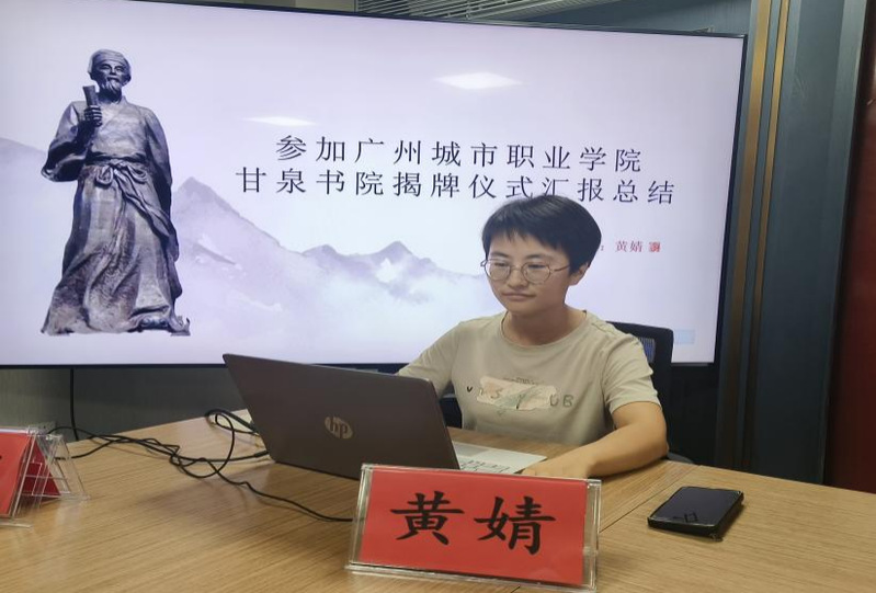 “德法”課教研室主任黃婧老師分享了參加“廣州城市職業(yè)學院甘泉書院揭牌儀式”的心得體會。她認為,甘泉文化要同時做好“硬件”、“軟件”建設,打造移動思政大課堂,構建“甘泉文化+大思政”研究模式,拓展研究深度與廣度。