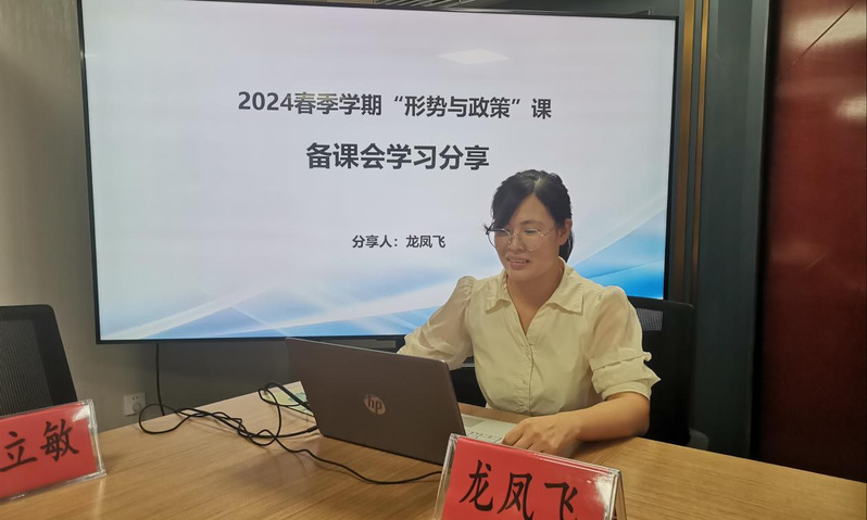 “形策”課教研室主任龍鳳飛老師分享《形勢與政策》課培訓情況。她提出“形策”課要設置懸念,激發(fā)學生探究形勢走向的欲望,激活學生解決國際國內(nèi)難題的智慧,引導課堂“議”起來;要用數(shù)字的方式歸納內(nèi)容,增加內(nèi)容的層次感、邏輯性、整體感,讓人一目了然把握核心內(nèi)容;要精心設計問題激活課堂效果、激發(fā)學生能動性、提升學生綜合素質(zhì)。通過情境選擇、情境創(chuàng)設、情境掌控作用于教學實現(xiàn)教學效果最大化。