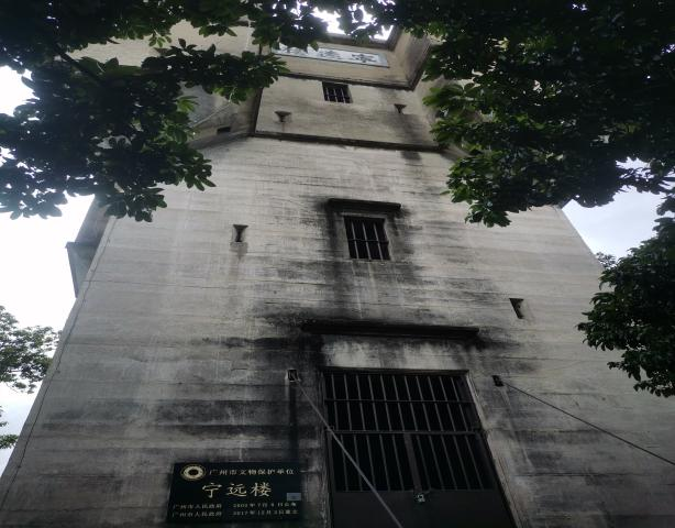 除了悠久的歷史淵源和僑鄉(xiāng)文化外,保存完整的碉樓也是震撼人心的古建筑之一。其中,寧遠(yuǎn)樓是廣州地區(qū)唯一的水上碉樓,現(xiàn)為廣州市文物保護(hù)單位。該樓取寧靜致遠(yuǎn)之意,樓內(nèi)功能齊全,有瞭望口、機(jī)槍口、炮口及炮架移動的軌道、食水井和廁所等,還有從天臺通往各層的傳聲孔。在1941年日軍攻打瓜嶺村時,這座碉樓因其易守難攻的特點(diǎn),保護(hù)了當(dāng)時全村人的性命。