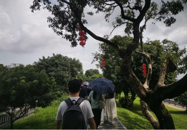 瓜嶺村始建于明朝成化年間,村落距今有500多年歷史,這里保留著明清時期嶺南水鄉(xiāng)的歷史風(fēng)貌,是廣東省著名僑鄉(xiāng),也是廣州唯一的水上清代建筑民居群。在講解員帶領(lǐng)下,我院一行人參觀了游客中心、碉樓、黃公祠、門樓、研學(xué)活動中心等,對瓜嶺村的前世今生有了全面而深刻的認(rèn)識。瓜嶺村原名瓜洲村,取瓜瓞綿長之意,歷史上曾有多位村民到海外謀生。咸豐六年前后,上百村民前往美洲淘金,20世紀(jì)又有村民赴新西蘭等地,現(xiàn)有3000多鄉(xiāng)親僑居海外,村民的奮斗精神和故土情懷為瓜嶺村注入了獨(dú)特的文化氣息。