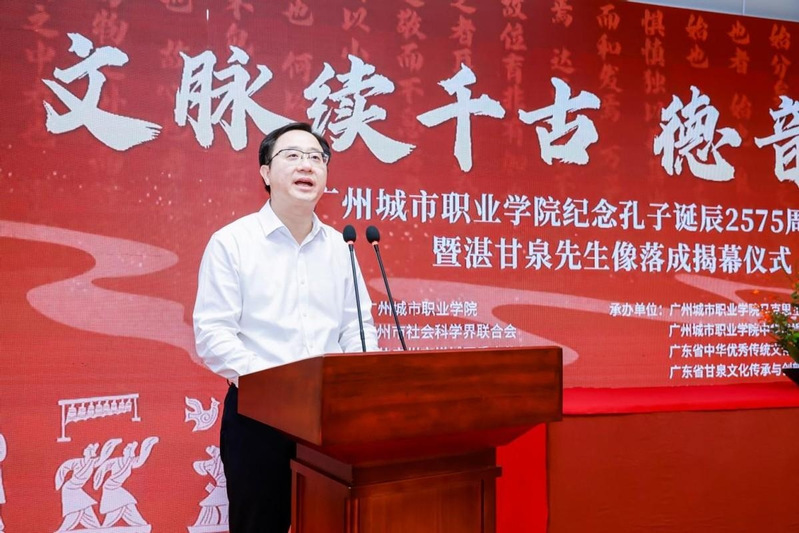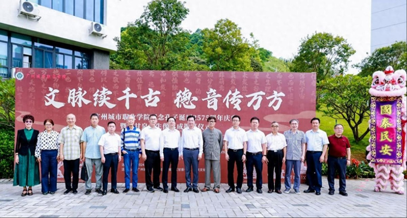 為傳承中華優(yōu)秀傳統(tǒng)文化,打造區(qū)域文化品牌,9月25日上午,紀(jì)念孔子誕辰2575周年慶典暨湛甘泉先生像落成揭幕儀式在廣州城市職業(yè)學(xué)院隆重舉行。我院院長廖良初和本院教師、廣州市甘泉文化研究會秘書長黃宇惠等多人應(yīng)邀赴會。