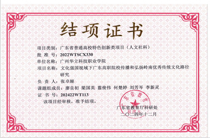近日,獲悉我校思政課教師張卓婭副教授主持的廣東省教育廳科研處發(fā)布的普通高校特色創(chuàng)新類項目(人文社科)順利結(jié)項。