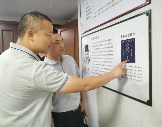 座談會(huì)結(jié)束后,學(xué)員們參觀了學(xué)校甘泉文化研究中心。研究中心執(zhí)行主任廖良初教授全面介紹了研究中心的基本架構(gòu)、團(tuán)隊(duì)成員、學(xué)術(shù)研究以及藏書情況等。在參觀過程中,學(xué)員們對(duì)湛若水的心性圖產(chǎn)生了濃厚興趣,并對(duì)研究中心的各項(xiàng)資源表示高度贊賞。