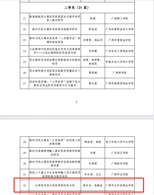 近日,我院多位教師撰寫的論文參加第二屆廣東民辦高校馬克思主義研究與教學學術論文征集及評選取得良好成績,廖良初、張燕金、何楚婷、劉燕等老師喜獲二等獎和三等獎。