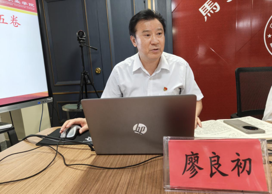 廖良初教授作總結(jié)。他在充分肯定何楚婷老師的精彩講解后,就接續(xù)深入研學(xué)《習(xí)近平談治國理政》第五卷提出明確要求:一是深刻把握以中國式現(xiàn)代化全面推進(jìn)中華民族偉大復(fù)興的中心任務(wù),理解其理論主題與戰(zhàn)略部署;二是深入領(lǐng)會(huì)“兩個(gè)結(jié)合”的根本要求,深刻把握馬克思主義中國化時(shí)代化的最新成果;三是深刻理解《習(xí)近平談治國理政》第五卷中的一系列新思想、新論斷、新觀點(diǎn)。他要求全體教師要認(rèn)真讀著作,學(xué)原文,悟原理。加強(qiáng)理論研究,及時(shí)將學(xué)習(xí)成果融入教學(xué)之中,切實(shí)推動(dòng)黨的創(chuàng)新理論進(jìn)教案、進(jìn)課堂、進(jìn)學(xué)生頭腦。