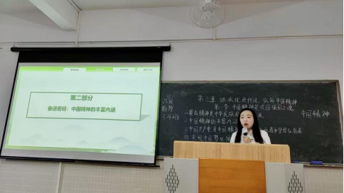 趙老師從“崇尚精神是中華民族的優(yōu)秀傳統(tǒng)”切入,精準(zhǔn)講解了中國精神的科學(xué)概念和深刻內(nèi)涵,生動(dòng)解讀了偉大創(chuàng)造精神、偉大奮斗精神、偉大團(tuán)結(jié)精神與偉大夢想精神的豐富蘊(yùn)涵,通過巧妙嫁接歷史典故、植入當(dāng)代實(shí)踐案例,引導(dǎo)學(xué)生穿越時(shí)空隧道,感知中華民族精神譜系的博大厚重,理解傳承中華民族精神的歷史自覺。授課有的放矢、言之有物、情理交融,賦予原理以深刻論證,還給予說教以現(xiàn)實(shí)關(guān)照和生活溫度,讓“中國精神”真正走進(jìn)學(xué)生心靈。