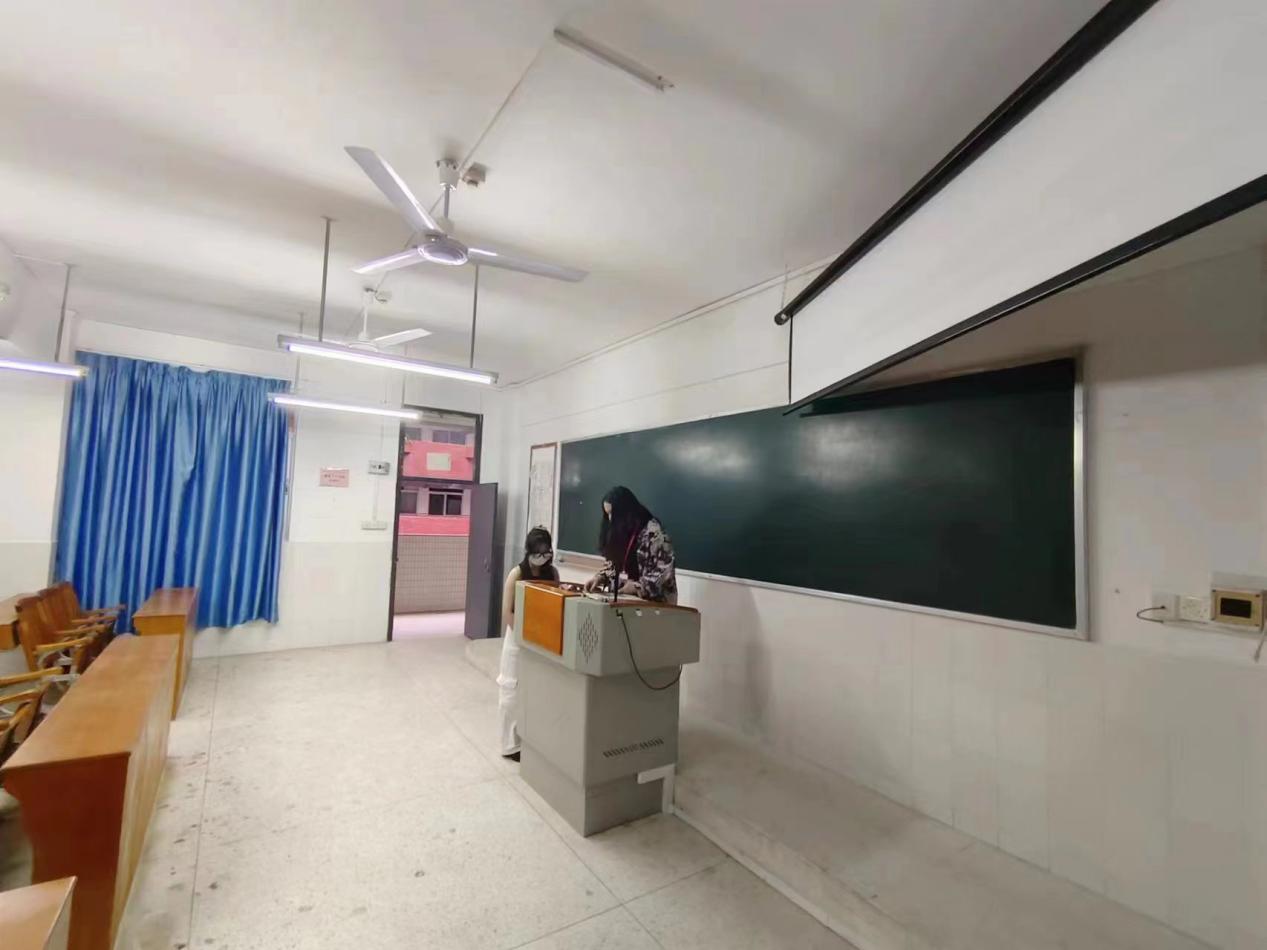 為了讓同學(xué)們能夠順利上好開學(xué)后的第一堂課,實(shí)習(xí)輔導(dǎo)員李婉蓉帶領(lǐng)團(tuán)學(xué)干部走進(jìn)教室,仔細(xì)檢查多媒體設(shè)備和教室的空調(diào)、衛(wèi)生。在檢查中,學(xué)生會(huì)干部將每間教室的多媒體設(shè)備都打開檢查一遍,登記問題并匯總上報(bào)學(xué)校總務(wù)。