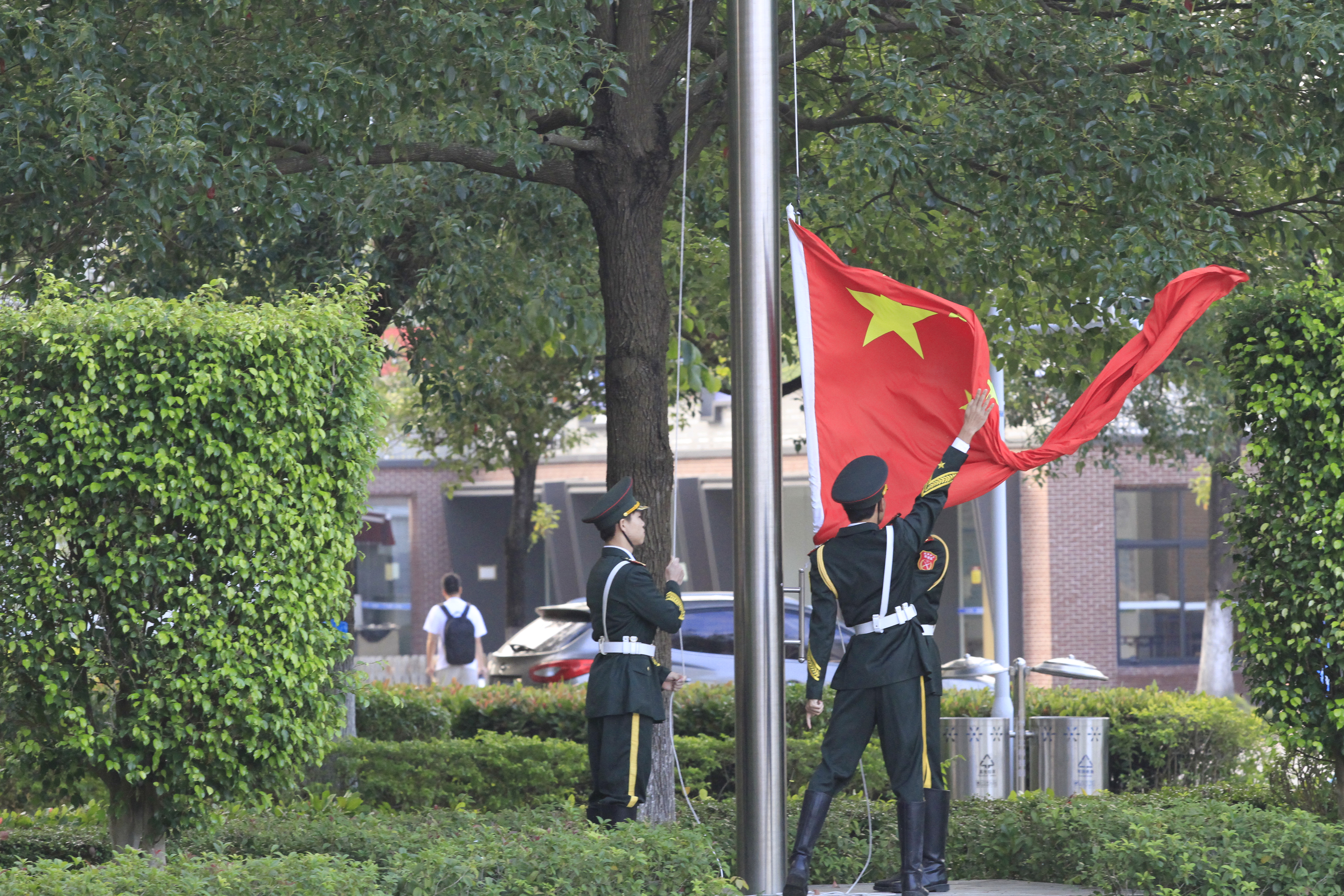 迎著朝陽,我校國旗護(hù)衛(wèi)隊邁著整齊劃一、鏗鏘有力的步伐,昂首闊步護(hù)衛(wèi)著國旗走向升旗臺。當(dāng)慷慨激昂的國歌聲奏響,升旗手虔誠而莊重地將國旗揚起,全體師生整齊列隊,行注目禮。在嘹亮歌聲中,鮮艷的五星紅旗冉冉升起,迎風(fēng)飄揚。