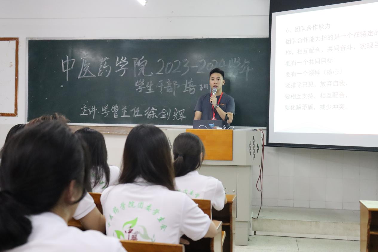 為加強(qiáng)中醫(yī)藥學(xué)院團(tuán)委學(xué)生會(huì)隊(duì)伍建設(shè),提高學(xué)生干部的能力與素養(yǎng),中醫(yī)藥學(xué)院于2023年11月2日在西二教學(xué)樓舉行了2023-2024學(xué)年第一次學(xué)生干部培訓(xùn)會(huì)。第一屆團(tuán)委學(xué)生會(huì)全體成員參加,本次培訓(xùn)會(huì)由中醫(yī)藥學(xué)院學(xué)管主任徐劍輝老師主講。