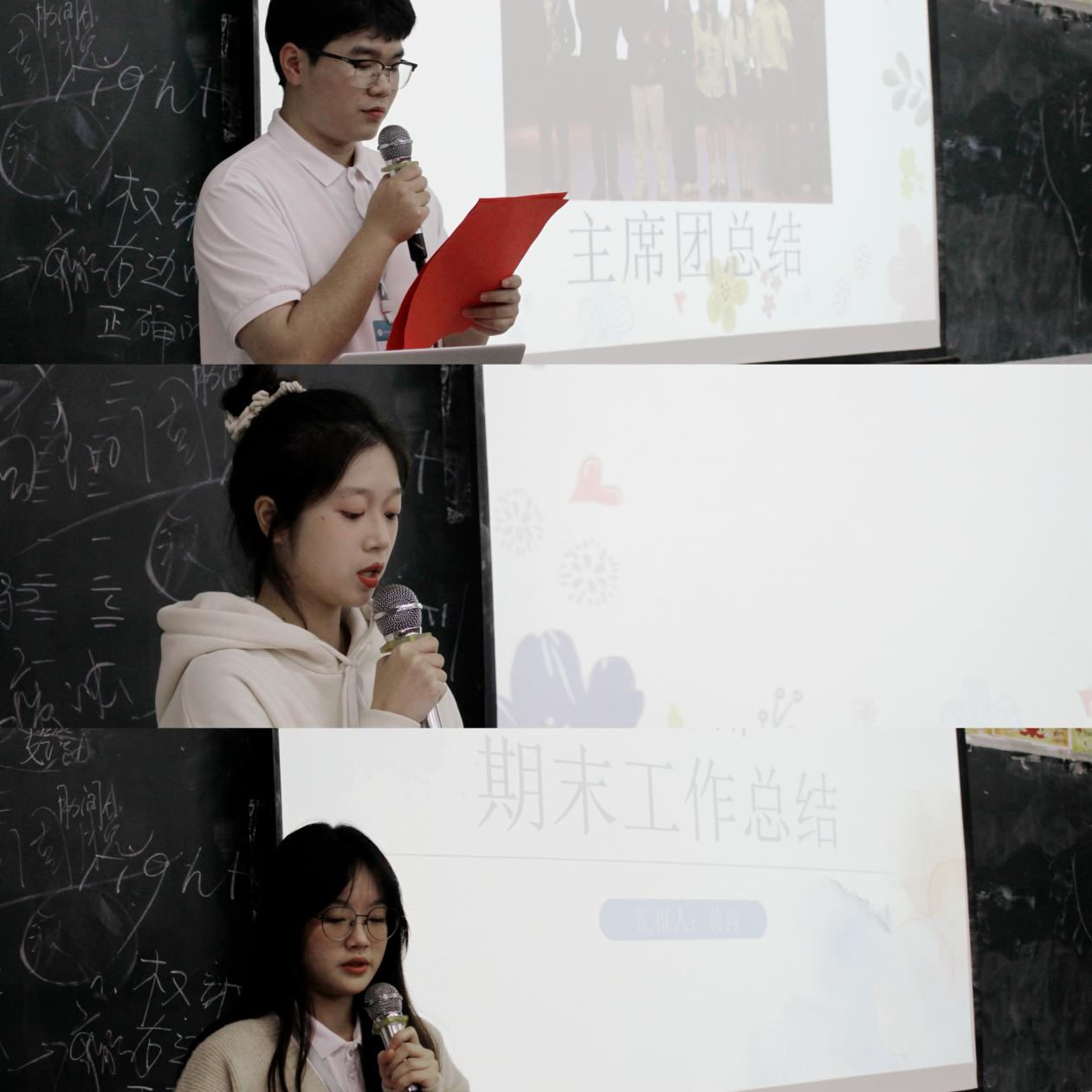 最后,團(tuán)委書記謝梓婷老師對(duì)本次大會(huì)進(jìn)行總結(jié)。她肯定了大家一學(xué)期以來辛勤的付出和出色的表現(xiàn),同時(shí)對(duì)各部門的工作的情況給予了認(rèn)可,也指出了需要進(jìn)行改進(jìn)的問題,希望各位干部、干事在接下來的一個(gè)學(xué)期能夠?qū)F(tuán)學(xué)活動(dòng)開展的更好,提高溝通、組織協(xié)調(diào)能力,發(fā)揮團(tuán)結(jié)協(xié)作精神,更好的為學(xué)校、老師和同學(xué)們服務(wù)。