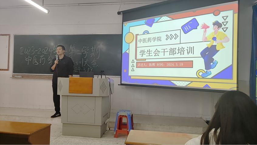 中醫(yī)藥學(xué)院直屬黨支部專職副書記陳輝老師對(duì)中醫(yī)藥學(xué)院成員們進(jìn)行培訓(xùn)