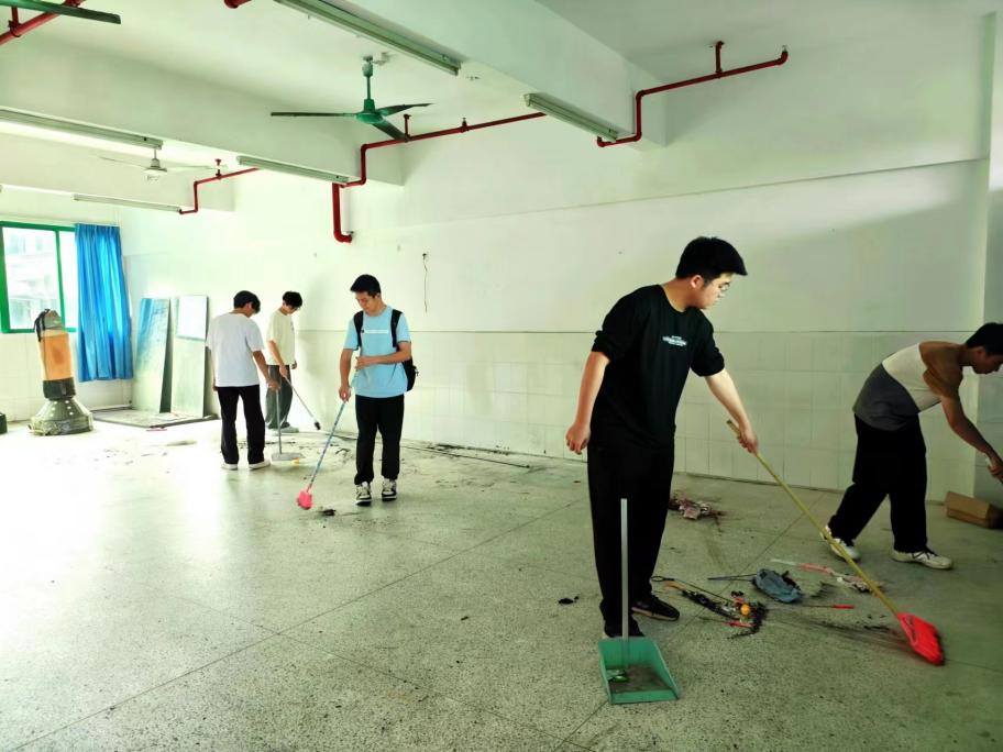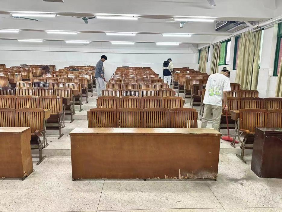 志愿者們分工合作,在活動負責(zé)人的帶領(lǐng)下有序進行。他們按照事先分好的小組,投入到各個教室的清掃工作中。他們細致入微地清理每一個角落,確保教室的地面、桌椅、黑板等都煥然一新。