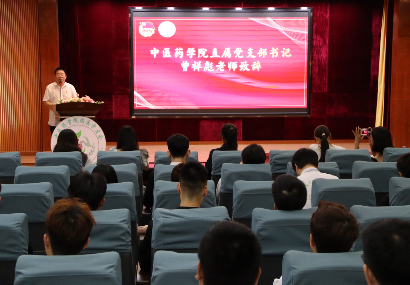 圖為 中醫(yī)藥學(xué)院直屬黨支部書記曾祥彪老師致辭