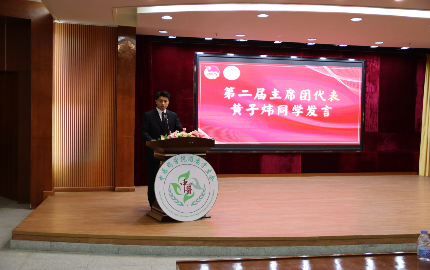 大會(huì)在莊嚴(yán)的團(tuán)歌中拉開帷幕。首先,由中醫(yī)藥學(xué)院直屬黨支部書記曾祥彪院長(zhǎng)致辭,強(qiáng)調(diào)了換屆大會(huì)的重要性,并對(duì)上一屆學(xué)生會(huì)的工作給予了充分的肯定,也透露出對(duì)學(xué)生會(huì)未來(lái)工作的期待和展望,希望學(xué)生會(huì)的成員嚴(yán)于律己,在保持對(duì)工作責(zé)任心的同時(shí)兼顧好學(xué)習(xí)的本職工作,能在新的一年里繼續(xù)努力,積極進(jìn)取,創(chuàng)造新輝煌。