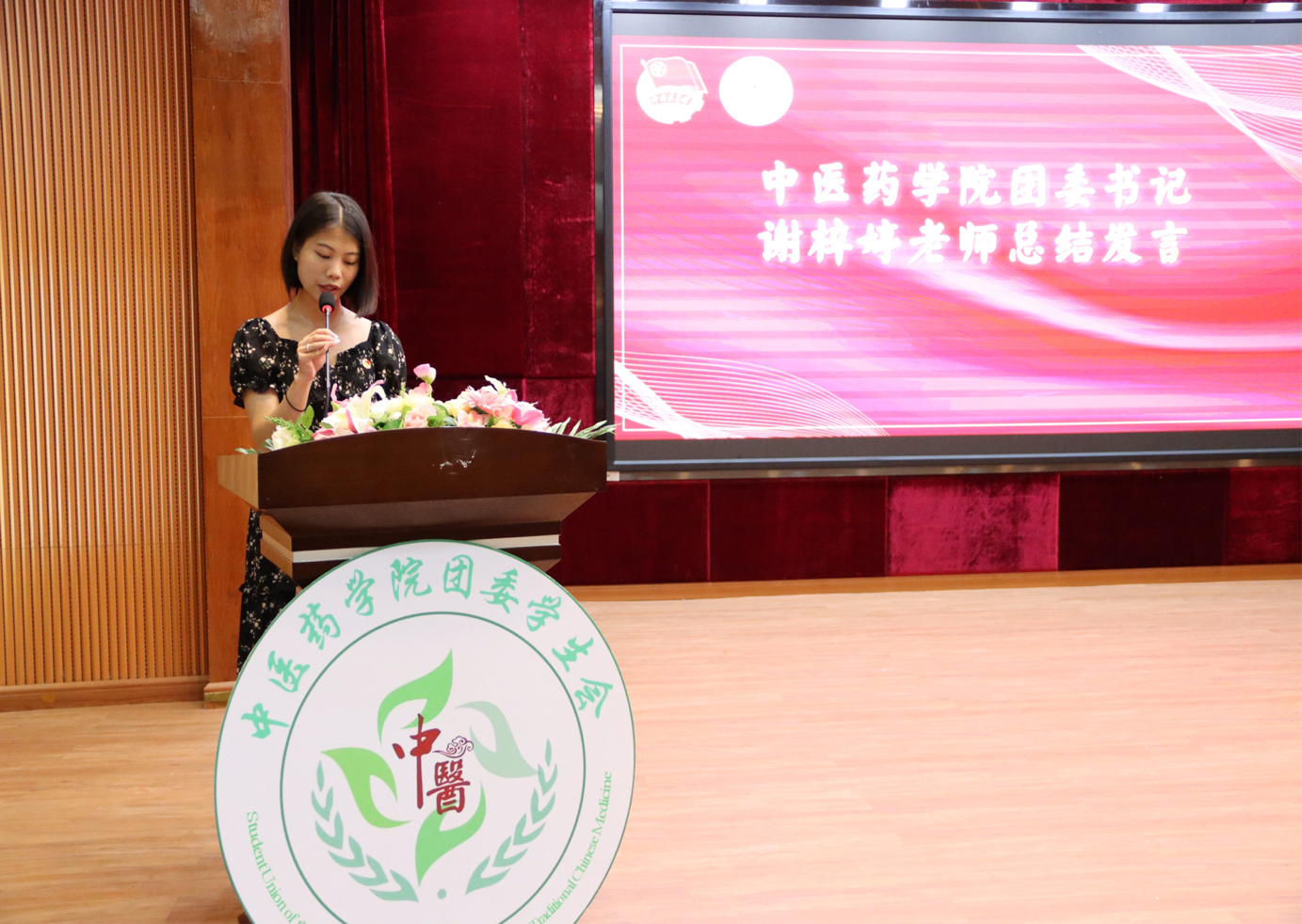 圖為 中醫(yī)藥學(xué)院團(tuán)委書記謝梓婷老師總結(jié)發(fā)言