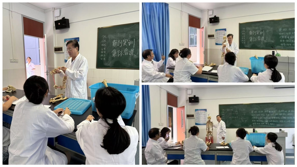 本次集體備課,還邀請(qǐng)了健康學(xué)院朱建剛教授進(jìn)行實(shí)訓(xùn)教學(xué)指導(dǎo),朱教授為各位授課教師集訓(xùn)實(shí)驗(yàn)課的教學(xué)內(nèi)容,包括實(shí)驗(yàn)室的日常維護(hù),上課的基本流程以及實(shí)訓(xùn)室中的人體骨架模型,各器官組織模型,大體標(biāo)本等進(jìn)行了詳細(xì)的講解和辨認(rèn)。