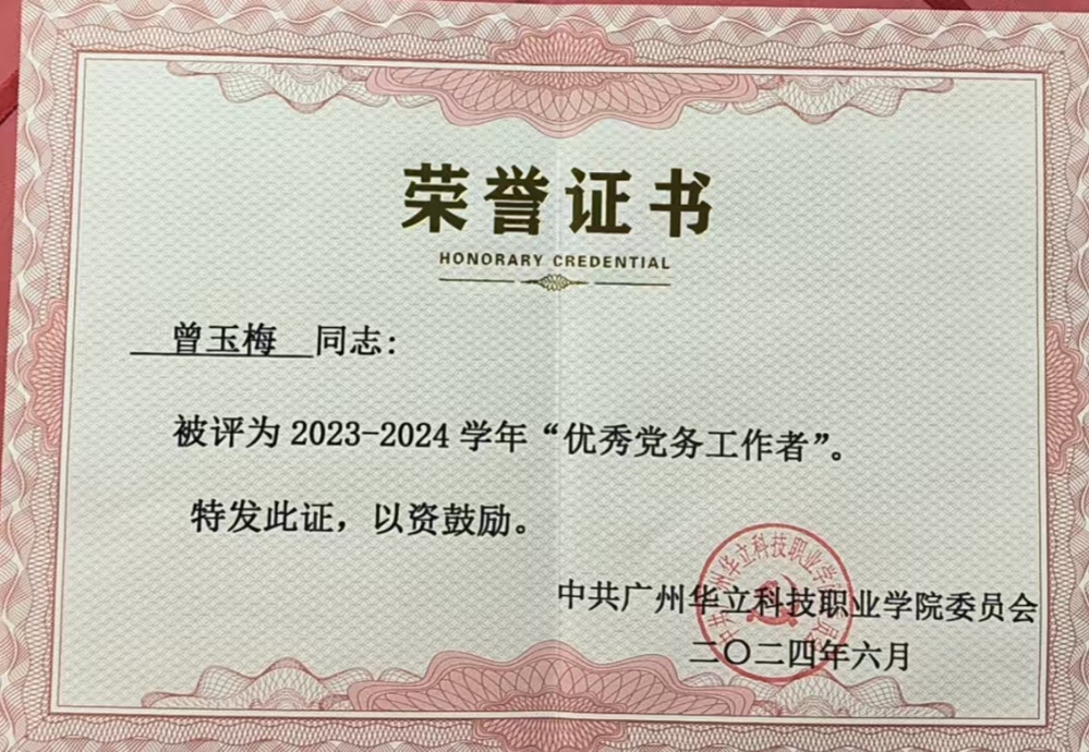 曾老師在擔(dān)任廣州華立科技職業(yè)學(xué)院中醫(yī)藥學(xué)院直屬黨支部宣傳委員期間,她以高度的政治責(zé)任感和使命感,默默耕耘在黨務(wù)工作的第一線。她深知作為一名黨務(wù)工作者,必須時(shí)刻保持對黨的忠誠和對人民的熱愛,用實(shí)際行動詮釋著黨性的光輝。