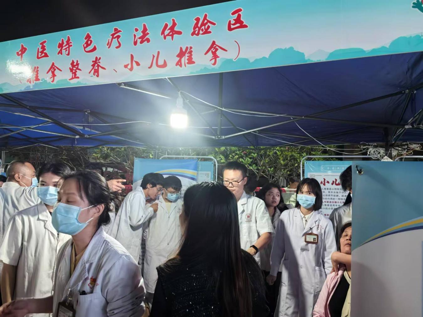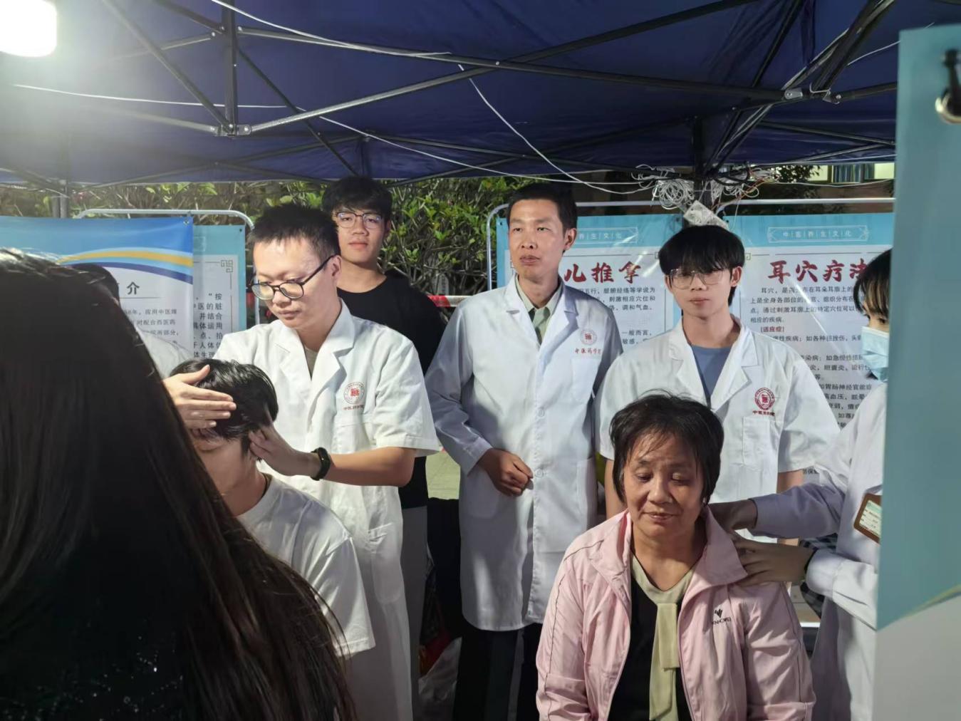 針推部指導(dǎo)教師馬本義指導(dǎo)學(xué)生對前來體驗(yàn)的群眾進(jìn)行推拿操作