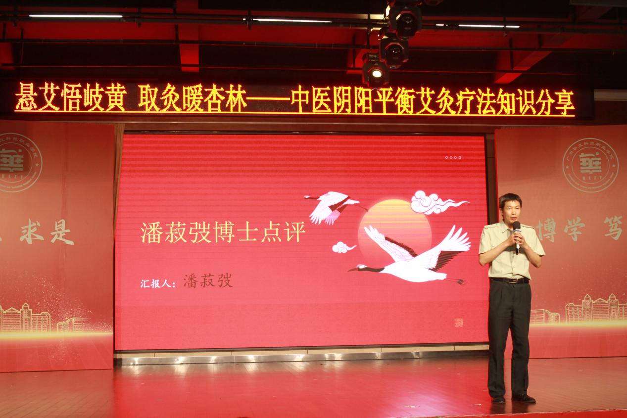 緊接著,石幸樂(lè)同學(xué)為大家分享中醫(yī)陰陽(yáng)平衡艾灸療法知識(shí)。他雖為學(xué)生,卻已有十多年的行醫(yī)經(jīng)驗(yàn),在艾灸療法方面頗有心得。石幸樂(lè)同學(xué)結(jié)合自己救治過(guò)的豐富病人案例,由淺入深地講解陰陽(yáng)平衡艾灸療法的理論基礎(chǔ);從中醫(yī)經(jīng)典里陰陽(yáng)學(xué)說(shuō)的溯源,到艾灸如何通過(guò)溫?zé)岽碳ぱㄎ粊?lái)調(diào)節(jié)人體陰陽(yáng),學(xué)生們通過(guò)他的分享系統(tǒng)地理解了這一傳統(tǒng)療法的內(nèi)在邏輯。為了讓同學(xué)們有更為直觀(guān)的感受,他列舉了眾多我們經(jīng)常遇到的疾病作為案例,詳細(xì)講解了艾灸的穴位選取、施灸手法和療程安排;并告訴同學(xué)們要學(xué)會(huì)甄別網(wǎng)絡(luò)上魚(yú)龍混雜的信息,認(rèn)認(rèn)真真讀經(jīng)典、悟原理,培養(yǎng)良好的中醫(yī)思維。