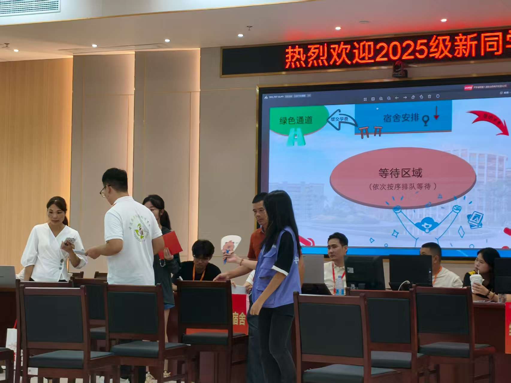 迎新現(xiàn)場,各項工作有條不紊。報到點前,志愿者們以最飽滿的熱情迎接新同學的到來。志愿者們分工明確,他們耐心細致地解答疑問、辦理手續(xù)、引導路線,幫助新生們快速完成身份核驗、住宿登記、專業(yè)咨詢等各項入學流程,學校還設立了“綠色通道”服務站,為家庭經(jīng)濟困難學生提供一站式咨詢服務,確保每位學子都能無憂入學。