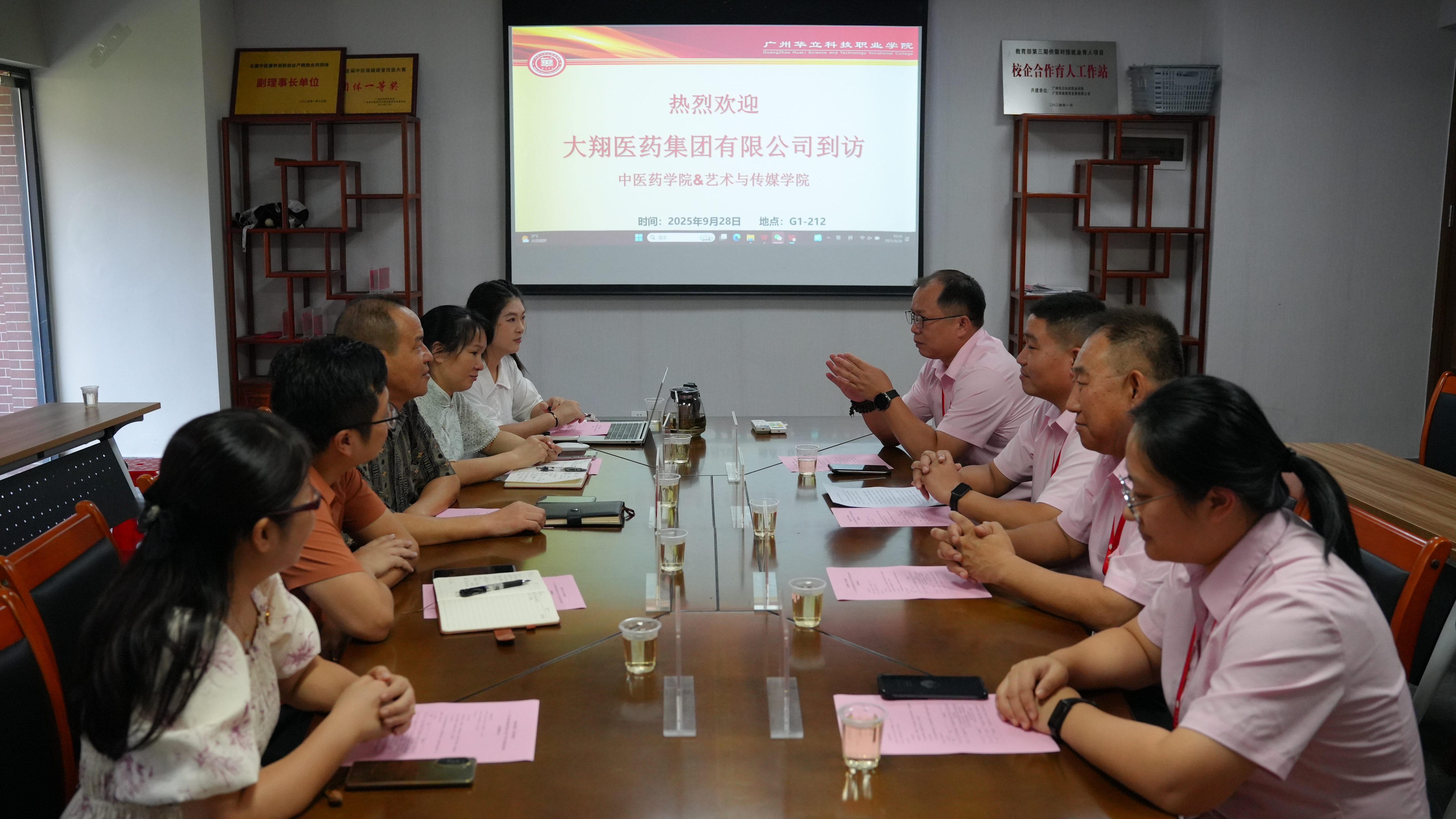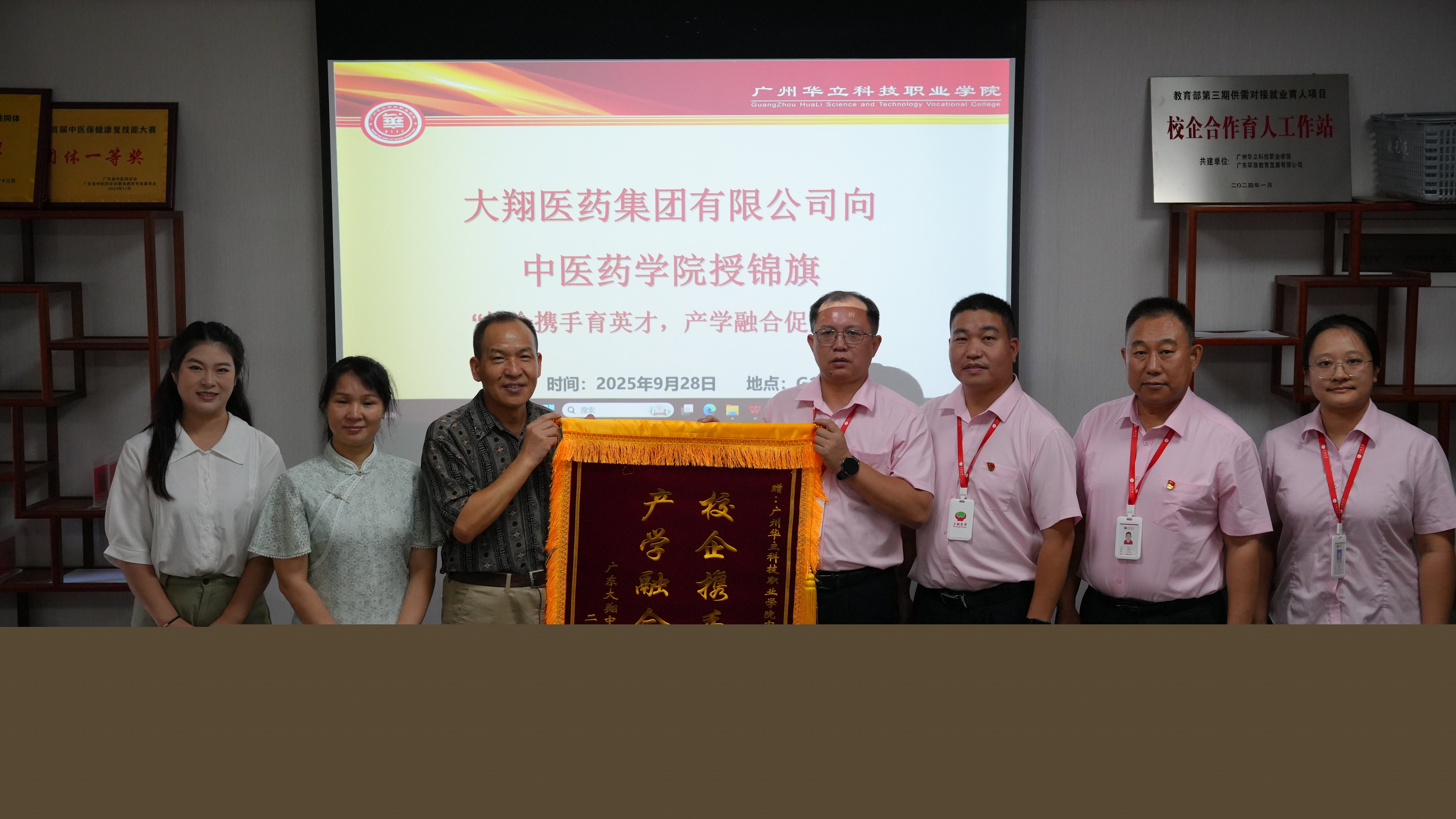 9月28日,廣東大翔中藥制藥有限公司多位領(lǐng)導(dǎo)一行專程到訪我校,就此前與我校中醫(yī)藥學(xué)院、藝術(shù)與傳媒學(xué)院達(dá)成的校企合作成果進(jìn)行回訪交流,并舉行贈旗儀式,表達(dá)對校方在合作中鼎力支持的誠摯謝意。