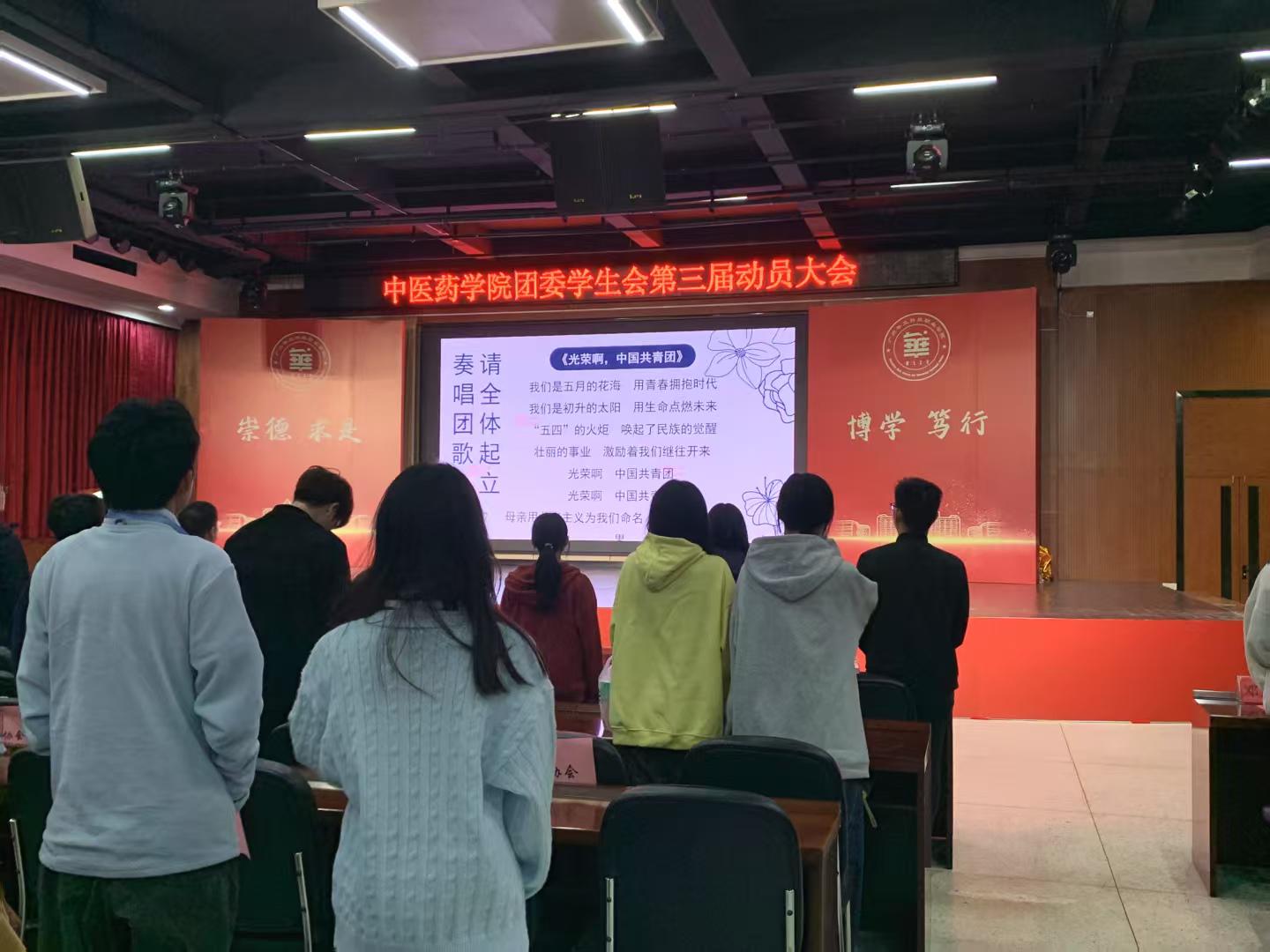 全體成員起立,奏唱團(tuán)歌,激昂的旋律拉開了大會(huì)的序幕,彰顯了共青團(tuán)組織的嚴(yán)肅性與凝聚力。