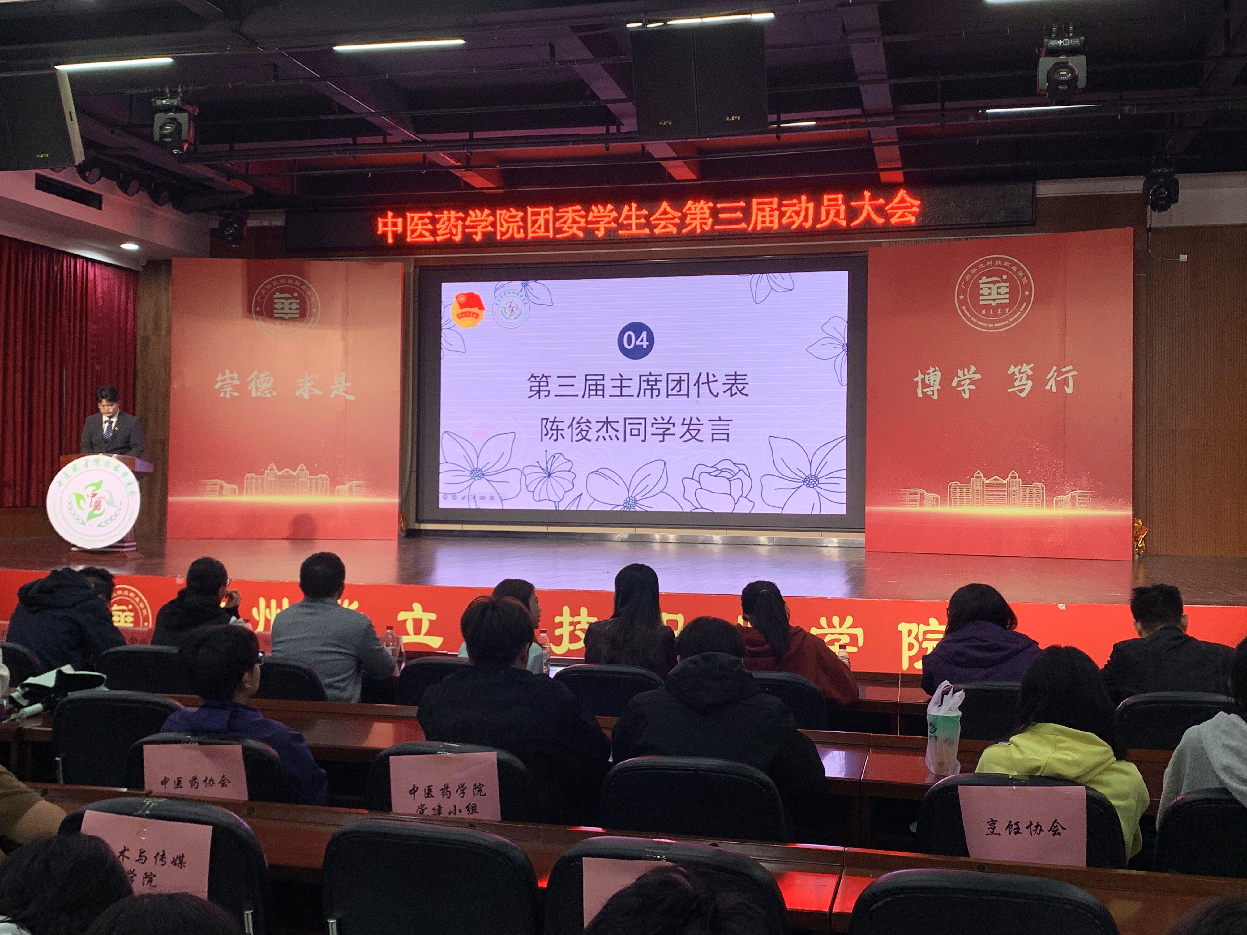 中醫(yī)藥學(xué)院團(tuán)委學(xué)生會(huì)第三屆主席團(tuán)代表陳俊杰同學(xué)進(jìn)行發(fā)言